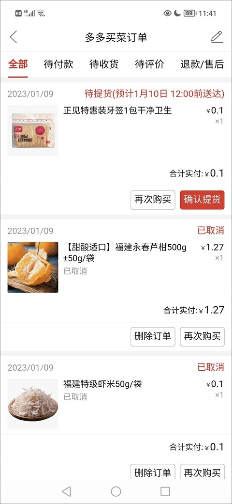 2、接着,在多多买菜的订单列表里找到你要申请退款的商品,并点击该商品。
