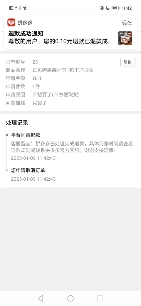 6、最后,在订单中就能看到订单退款的状态了。