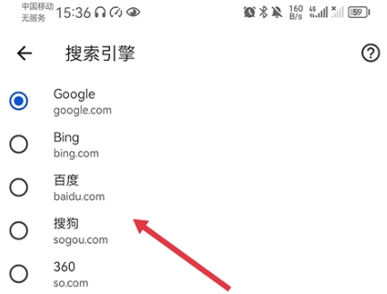 7. 在这里,您能够切换至谷歌搜索引擎,当然,您也可以挑选其他搜索引擎来使用。