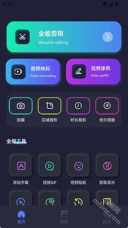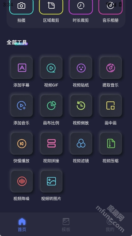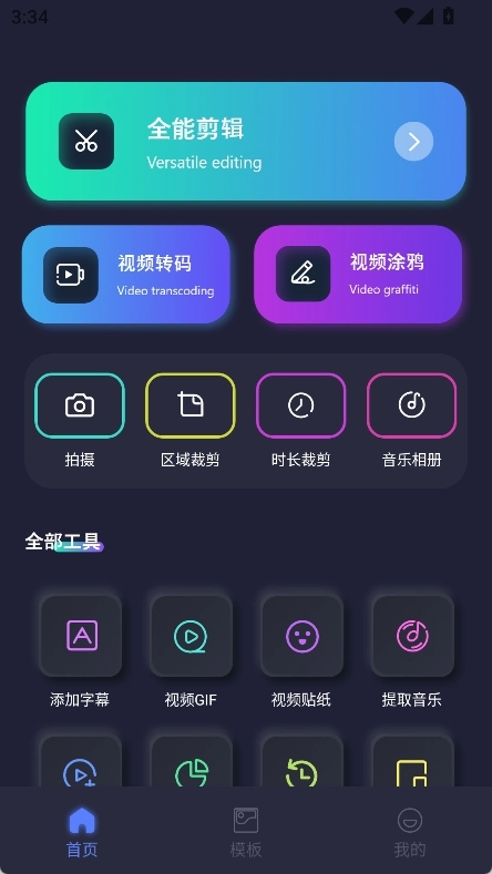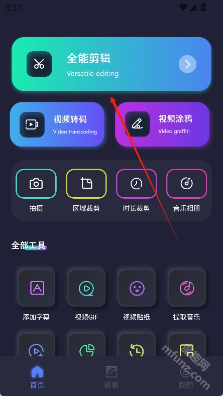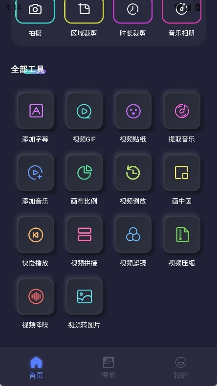 2、进入首页可看到众多的视频剪辑功能供大家使用