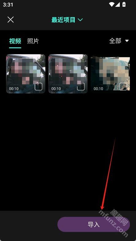 4、挑选好需要处理的视频后,点击下方的“导入”按钮,就能进入编辑界面了。