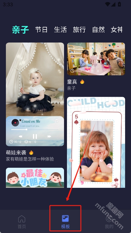 6、在“模版”板块中有各种各样的视频剪辑模版供大家使用