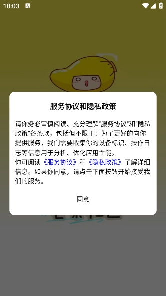 1、打开进入芒果社区软件,点击同意隐私政策