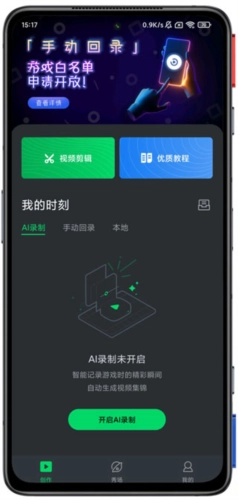 游戏录屏方面,AI录屏功能能够智能识别并捕捉游戏里的击杀、团战等高光瞬间,而手动回录功能可以让用户根据需求随时录制游戏片段。