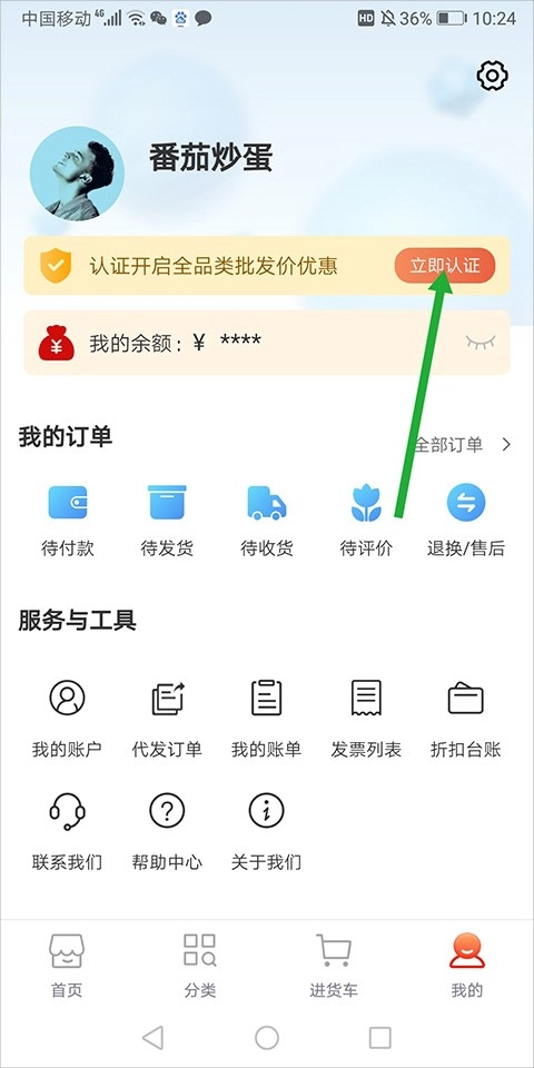 1、用户在本站获取娃哈哈相关应用后,将其安装到手机上并打开登录。随后进入【我的】页面,点击其中的【立即认证】(即下图绿色箭头所指向的位置)