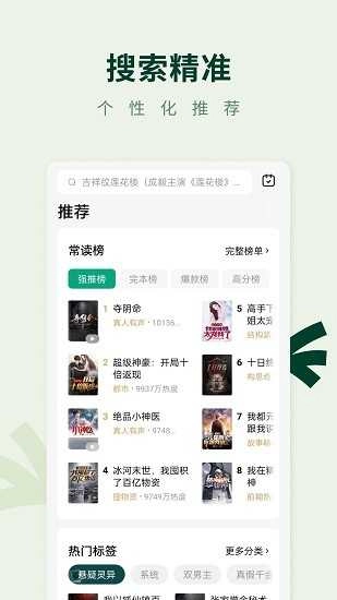 常读小说手机版是一款实用性很强的小说阅读应用,平台上收录了丰富多样的小说资源,涵盖男频、女频等不同类别,还包含古代与现代等多种题材。喜爱阅读小说的用户不妨点击体验一番,从此再也不用为书荒问题发愁了!