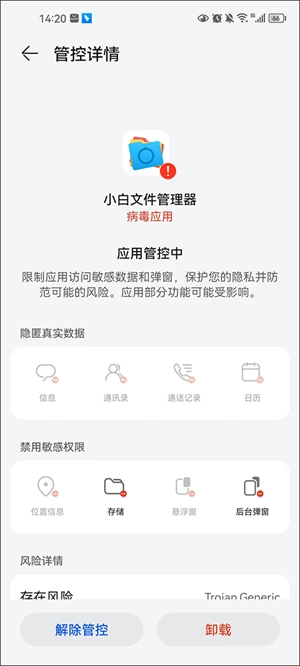 4、左下角设有解除管控的按键,确认解除管控后,小白文件管理器即可正常使用。