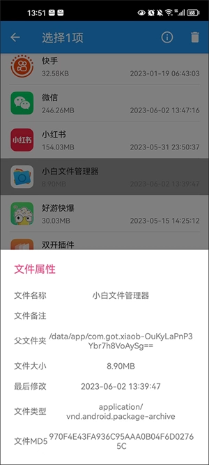 1、用户长按文件后,能够查看该文件的路径以及各类相关信息等内容。