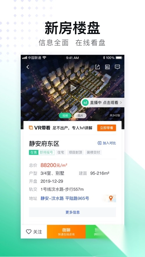 3、新房多场景优化VR带看入口,随时随地,想看就看。