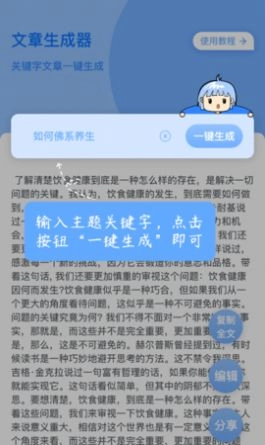 1、非常不错的文章生成软件,用户只需数据关键字就能够生成文章;