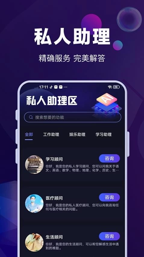 - 私人助理:覆盖学习、医疗、生活、娱乐等多方面。