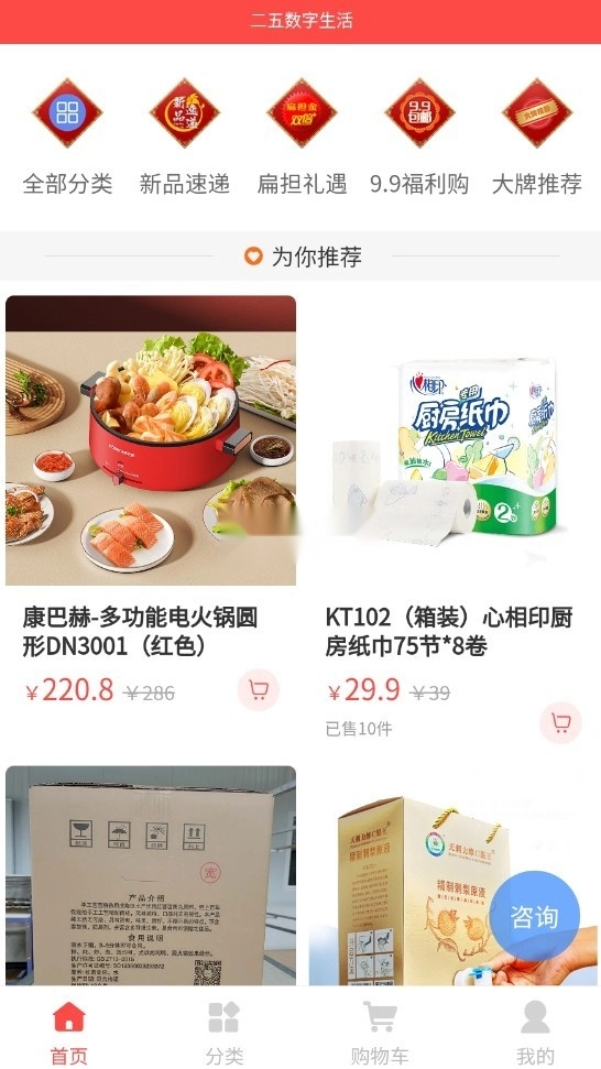 《二五数字生活》是一家新兴的源头厂家销售购物平台,是为广大会员提供购物优选服务,商品主要以质优价平的生活刚需品、名优特产品、乡村振兴农产品为主,属于新兴的民族自主品牌。