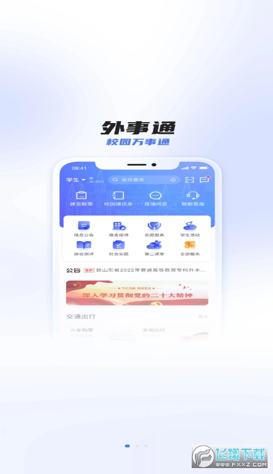 外事通(山东外事职业大学)是专门为山东外事职业大学打造的一款智慧校园服务软件,软件内提供了丰富的功能服务,为全体校园师生打造便利的校园生活,通过软件用户可以第一时间知晓最新的校园动态通知,了丰富的校园和生活服务,欢迎大家前来。