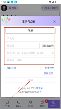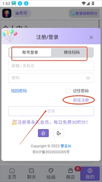 1、打开慧言ai软件首页进入我的界面,点击右上角登录