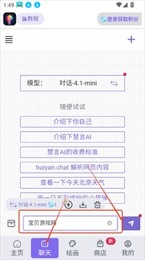 1、进入慧言ai软件首页,“聊天”板块,可以直接文本框输入内容,点击发送