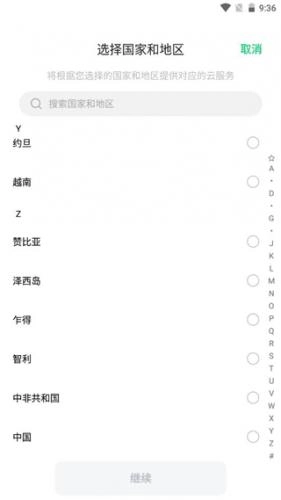 1、大家初次进入软件,如图所示根据自身情况选择国家和地区。