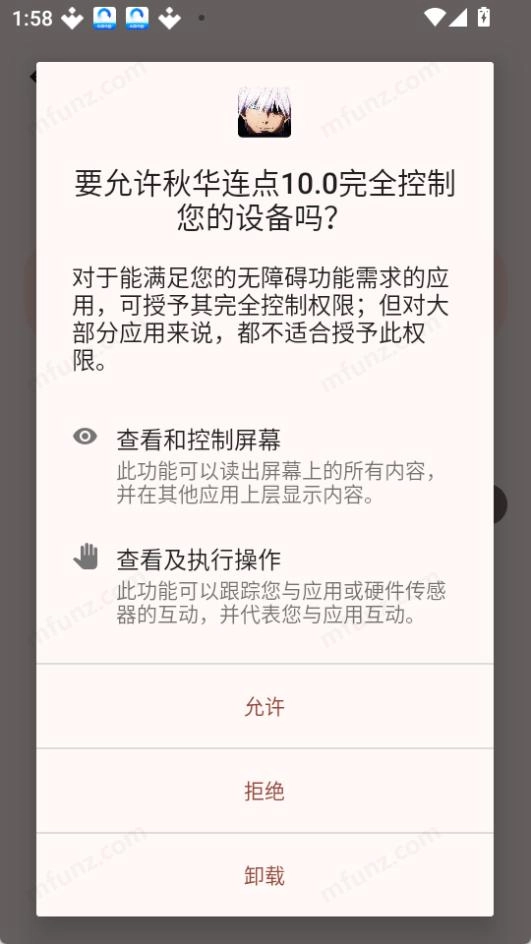 3.在弹出的“要允许秋华连点10.0完全控制您的设备吗?”界面中点击允许即可开启权限设置。