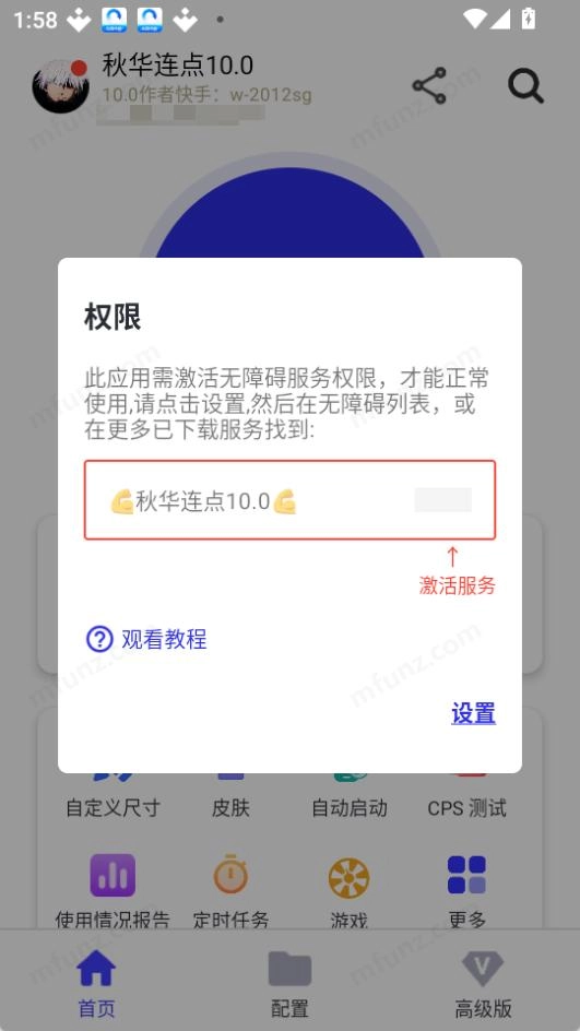 秋华10.0正式版是一款免费自动连点器软件,秋华连点器10.0版有着这个版本特有的vip功能,支持15-60帧无字、60帧无字、90帧无字以及120-144帧无字,在使用过程中也是需要先开启无障碍权限的,并且优化建议调成1,其他的配置和设置等和秋华连点器其他版本差不多,大家可以按需配置。