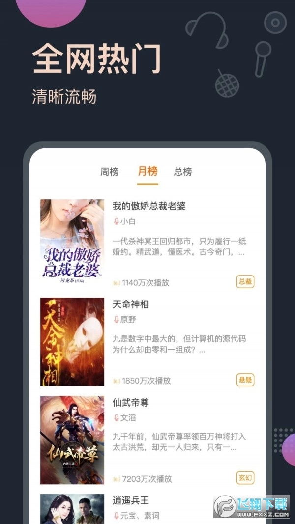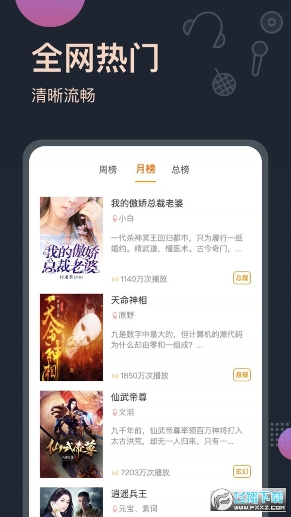 免费全本小说随意听,奇幻修真、都市言情小说、古典仙侠、校园青春、穿越架空、悬疑推理、历史军事、同人文、政界势力、初入职场比赛、科幻片诡异、经典图书等各种小说集一应俱全,解放出你的眼睛,感受一级棒