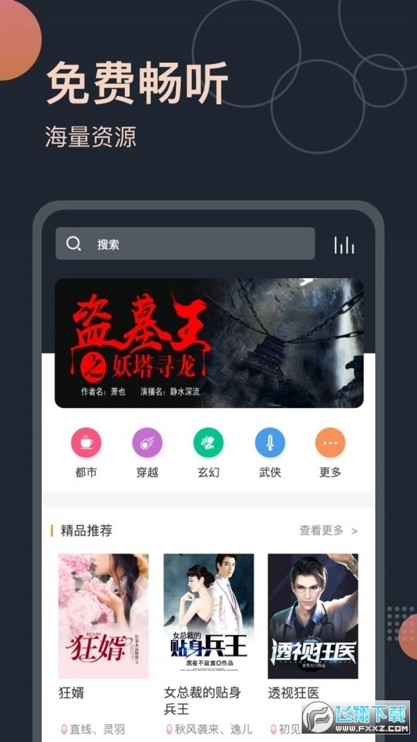 免费听书王多维度的分类导航设计和资源管理,让您轻轻松松找到想听的作品。