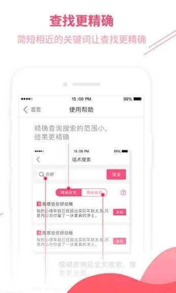1.不同场景的聊天话术为你一一类型,恋爱情话帮你找到对应的聊天话术,打破聊天冰冷氛围。