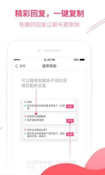 2.一键复制话语,让你回复消息的速度,跟女生聊天让她不在等。