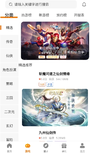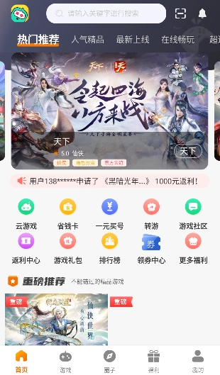 2. 软件了游戏排行榜,展示了最受欢迎的游戏和最新上架的游戏。