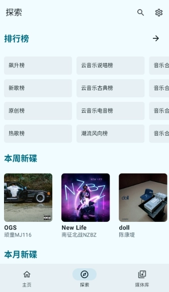 点击探索,热门榜单和歌单点击即可了解