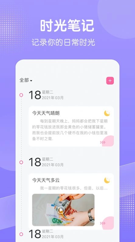 一款记录心情和故事的日记App 是贴心的生活助手,是温暖的精神角落。 记录每日心情,倾听每日心事,一同守护你的秘密。 倒数日记录备忘重要日子,让你不因忙碌而忘记。