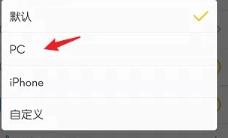 5、点击“PC”将桔子浏览器UA标识换为PC版即可。