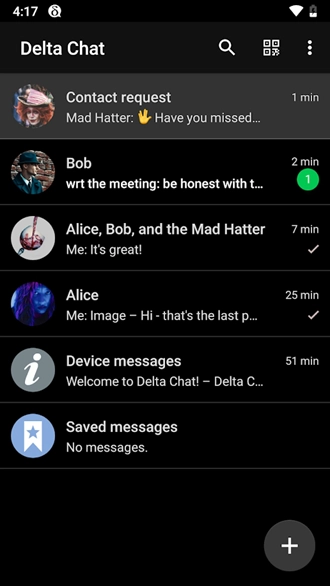 4、DeltaChat提供邮件聊天功能,可以轻松在软件发送聊天内容。