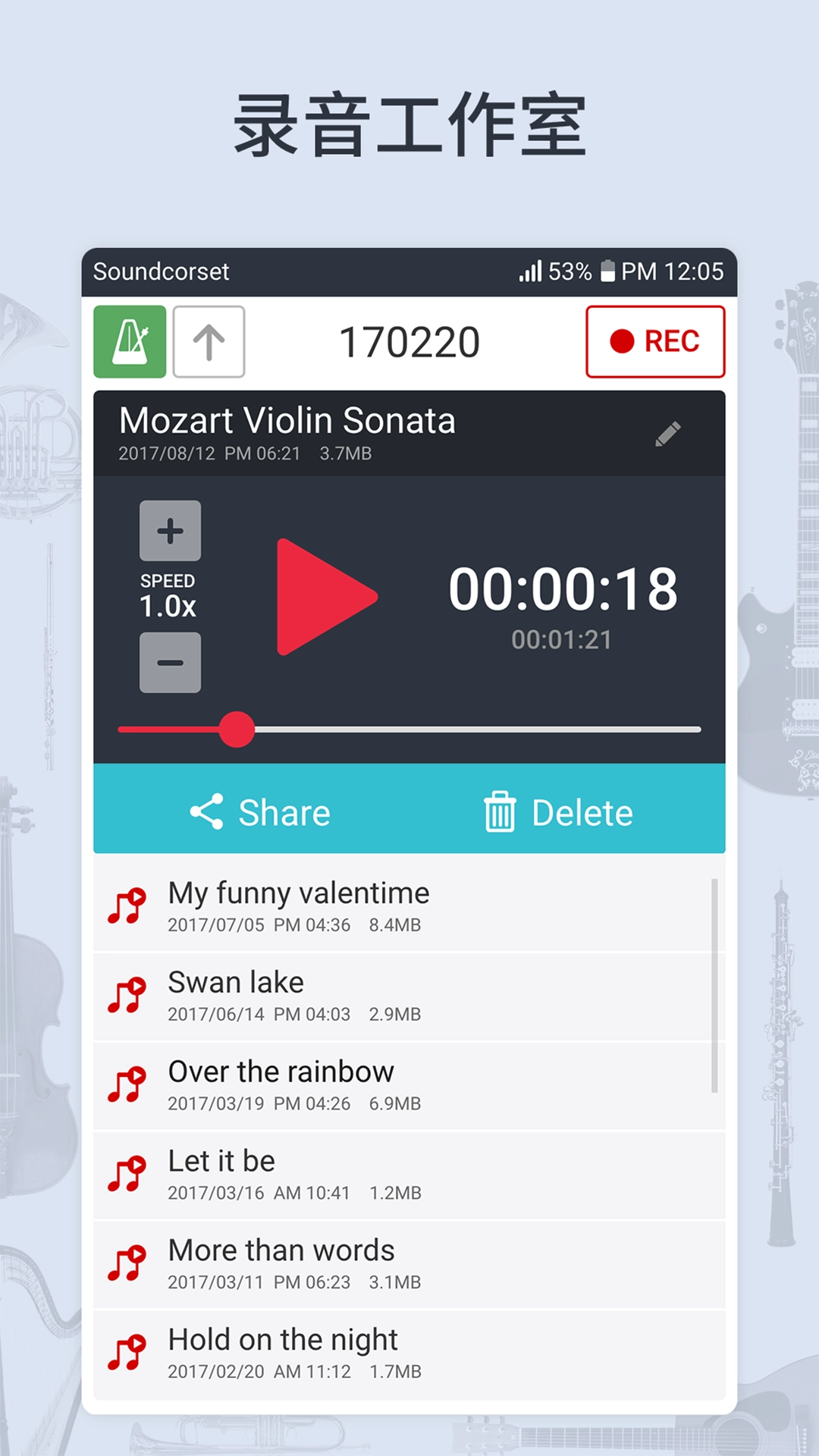 2、一体式节拍器+调音器+录音机覆盖钢琴,单簧管,声乐练习等。
