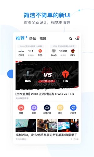 1、在主页,我们可以看到有关电竞的一些行业信息,例如最近的活动,还有专栏信息以及幻联赛等。
