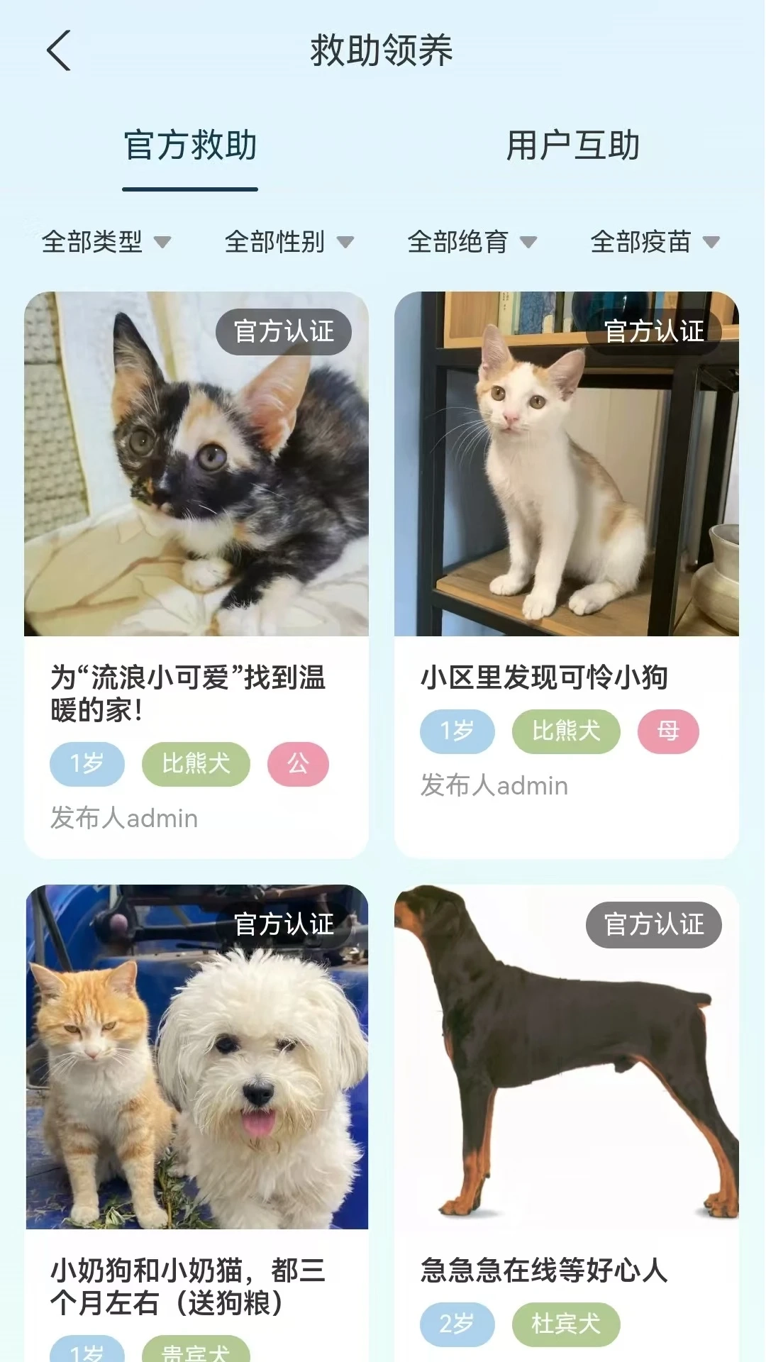 petmeet最新版简直是爱宠人士的天堂,里面汇集了其他人发布的宠物照片、视频,整个人都被萌化了。还能给宠物“相亲”找伴侣~点击救助领养可查看或其他人发布的救助信息,点击申请有机会领养可爱的小动物,为宠物救助活动贡献一份爱心!