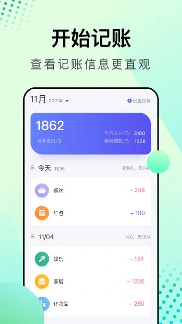 1、所有的记账工具是非常的清晰的,用户可以清楚的知道自己的钱花到什么地方了。