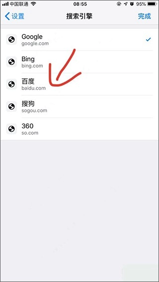 6、选择百度,然后保存,回到主界面