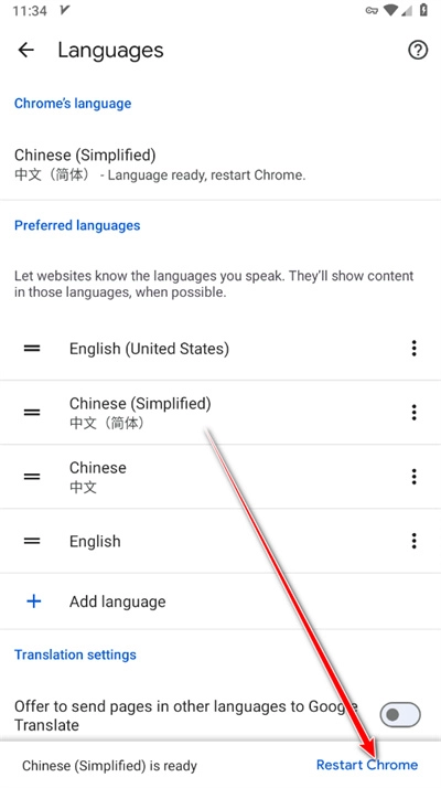 4.点击Chrome's Language下方的English
