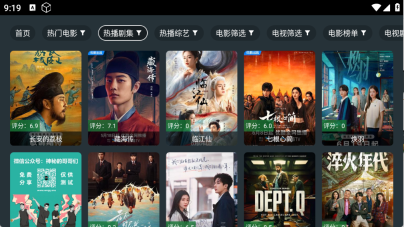 首页顶部栏汇集了丰富多样的影视剧集,包含电视剧、电影和综艺等不同类型。