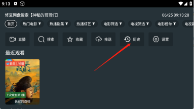 1、进入东北TV 首页,点击右上角的历史。