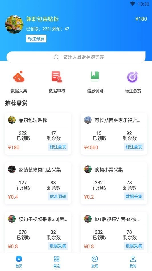 1、所有任务的赏金价格都直观透明,你可以根据赏金价格在此挑选兼职任务,系统会自动为你推荐高佣金的兼职。