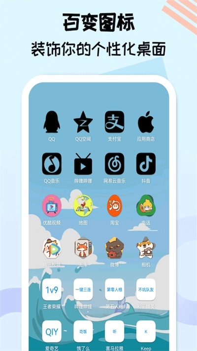 1、能够为用户提供丰富的手机图标工具包,便于用户自由挑选个性化图标;