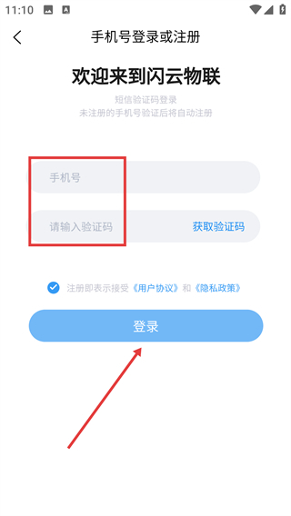 4、进入手机号登录界面后,依次填写【手机号】、获取并填写【验证码】,勾选相关协议,最后点击【登录】按钮即可完成登录操作。