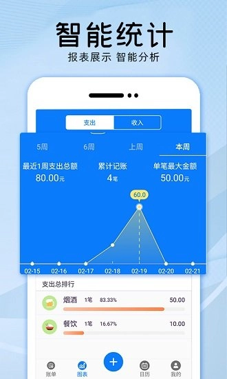 3、自动为用户生成收支数据的统计图与曲线图,让数据查看变得更加简单直观。