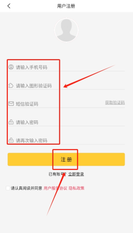 3、若您还没有账号,可点击注册按钮,输入手机号获取验证码,接着按照提示步骤填写相关信息并设置密码,就能快速完成注册,开启惬意的美食探索之旅。
