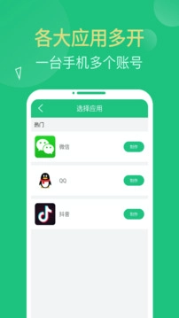 一个非常稳定的多开助手,支持微信、qq、微博、抖音,美团,淘宝等软件。只要是手机上的软件,它就可以无限期打开,而且永远不会闪回来,稳定可靠。