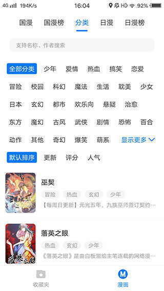 5.平台涵盖的漫画类型十分丰富,并且做了细致的分类,能让读者更便捷地查找和筛选,界面设计也十分清爽。