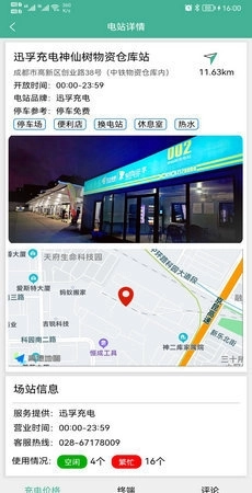 4、查看充电站信息,可了解该充电站的充电价格、电桩使用与占用情况,以及电站配套设施等相关内容;
