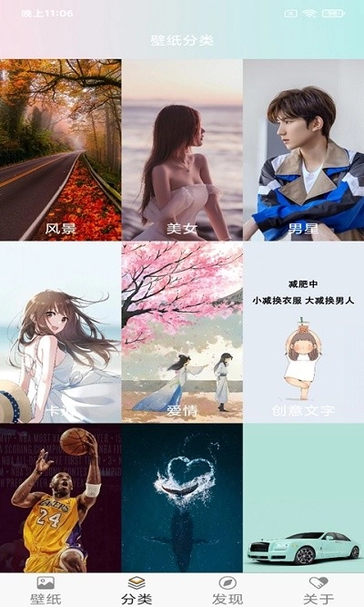 1、软件的界面设置简洁且富有多元化风格,我们能轻松找到自己心仪的壁纸。