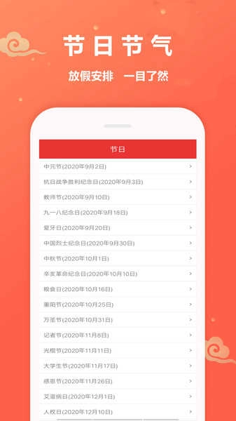 1、【万年历】节日节气,详情介绍。