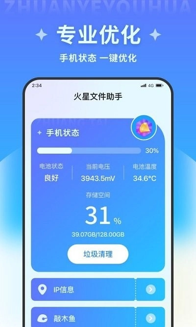 火星文件助手是一款具备专业掌上文件管理与编辑功能的软件,设有多种清洁选项,用户可依据自身需求选择不同清洁方式,助力轻松释放手机缓存,使手机运行更流畅、更省电;同时支持关闭后台运行的应用,能帮助用户便捷管理手机上的各类文件,并提供智能化检索功能,欢迎各位用户体验火星文件助手!